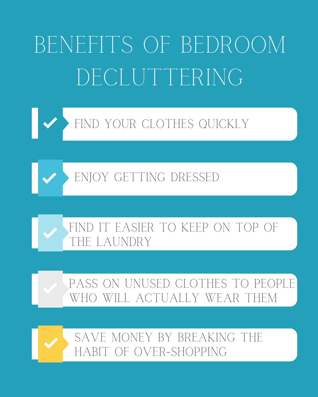 Stressfully searching through wardrobes overloaded by clothes you’ve outgrown or worn out will derail your day. Too many outfit options to choose between causes decision-fatigue, and so much money is wasted losing items that often still have tags on.